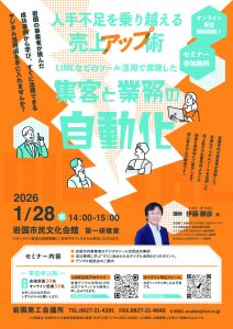 岩国市内の事業者が実践した、多様なデジタルツールを活用した売上拡大や生産性向上などの秘策を具体的にご紹介します。初心者の方も大歓迎です!