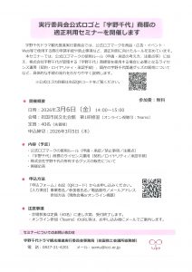本セミナーでは、公式ロゴマークの使用ルール(申請・承認の考え方、注意点等)に加え、株式会社宇野千代が管理する「宇野千代」商標等を使用する場合に必要となるライセンス運用(契約・ロイヤリティ・承認手続)、既存の宇野千代関連グッズの販売についてなど、具体的な手続の流れをわかりやすく説明します。